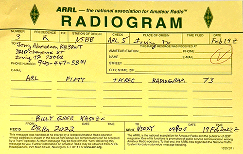 This month’s presentation will be led by Bill Byrom, N5BB, who will dive into the world of Radiograms—formal messages sent via Amateur Radio. Bill brings decades of experience, having first learned radiogram traffic handling over 55 years ago as a high school ham.